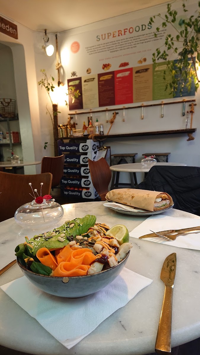 The atmosphere at Natur Tørst is cozy and inviting, with both indoor seating featuring high tables and comfortable chairs, and a charming outdoor area perfect for enjoying your meal while soaking up the lively street scene of Amagerbrogade. Clean and well-maintained facilities also add to the positive experience of visiting this local gem. John Valliant Lauritzen speaks for many, highlighting the cleanliness and top-notch quality of their freshly made dishes, affirming that you can expect nothing but the best when you dine here.